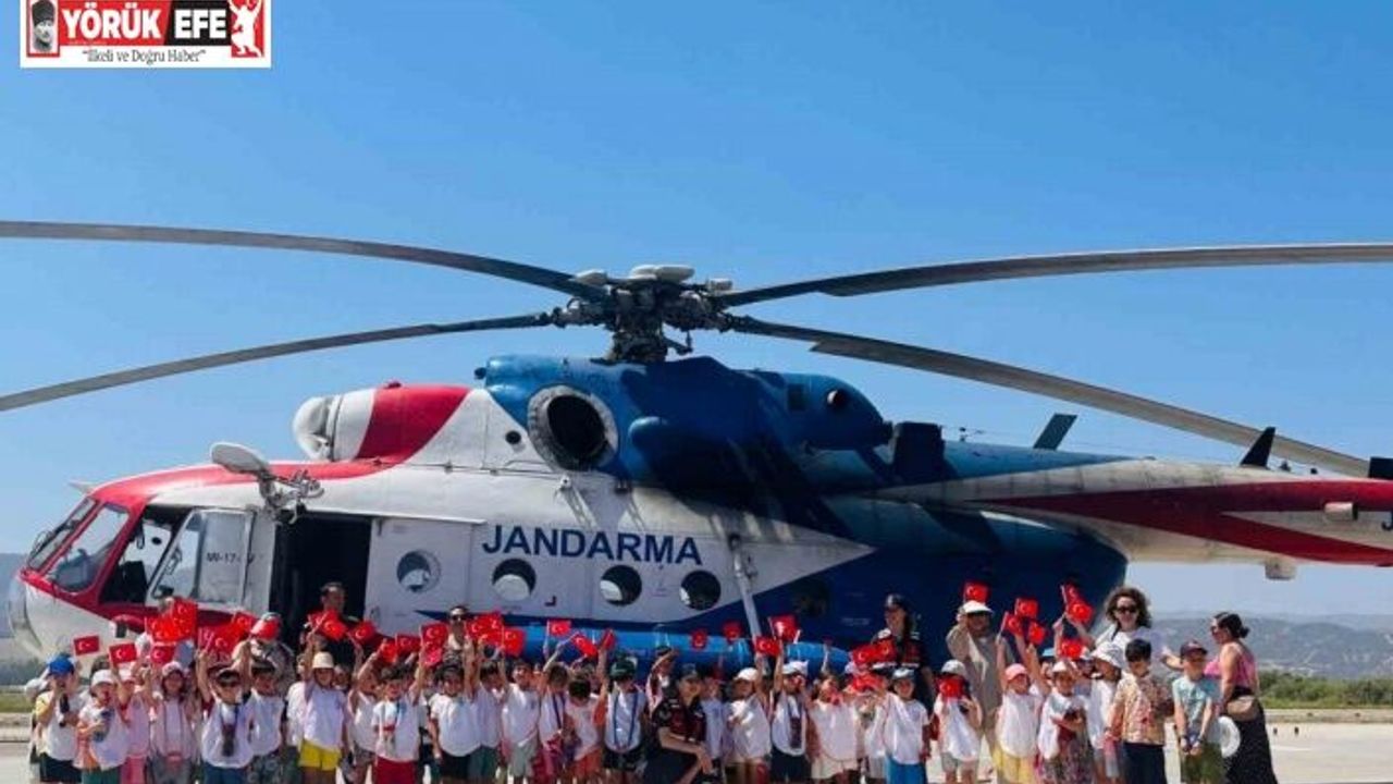 Aydın’da Filo Komutanlığı’nı ziyaret eden anaokulu öğrencileri, hem jandarmayı daha yakından tanıdı, hem de helikopterleri görerek unutulmaz bir gün geçirdi.