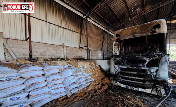 Aydın’ın Dalama Mahallesi’nde bir besihaneye yem getiren tırda çıkan yangında tır ve dorsesindeki yemler tamamen yanarak kullanılamaz hale geldi.