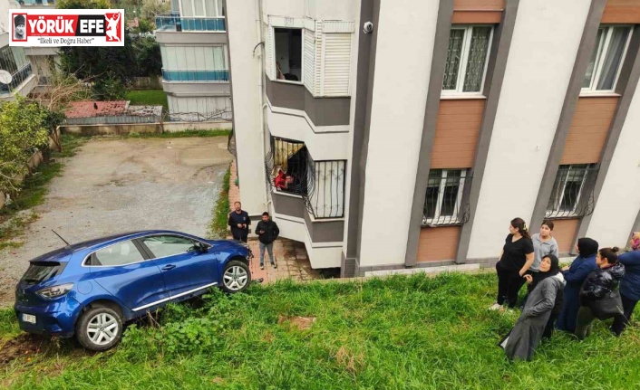 Aydın’ın Kuşadası ilçesinde iddiaya göre sürücünün fren yerine gaza basması sonucu kontrolden çıkan araç bir sitenin bahçesine yuvarlandı.
