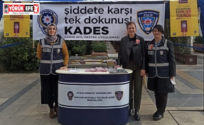 Aydın İl Emniyet Müdürlüğü Asayiş Şube Müdürlüğü Aile İçi ve Kadına Karşı Şiddetle Mücadele Büro Amirliği ekipleri kentin muhtelif yerlerinde kurdukları stantlarda kadına şiddete dikkat çekerek Kadın Destek Uygulamasını (KADES) tanıttı.