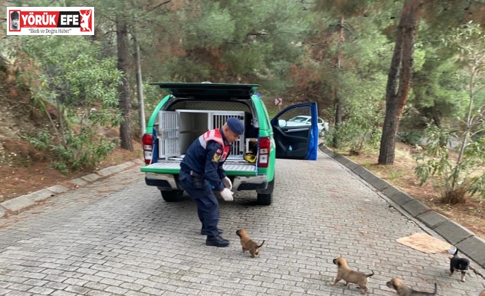 Aydın’ın Efeler ilçesinde ormanlık alanda terk edilmiş ve aç halde bulunan yavru köpekleri jandarma ekipleri kurtardı.