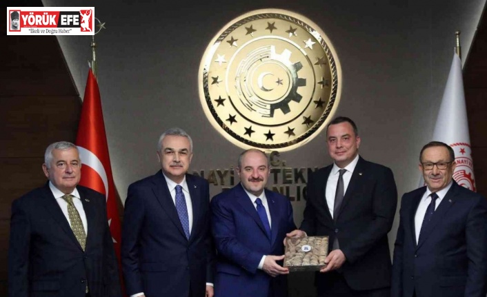Aydın Ticaret Borsası Yönetim Kurulu Başkanı Fevzi Çondur, Meclis Başkanı A. Bahri Erdel ve Yönetim Kurulu Başkan Yardımcısı Cengiz Ülgen, Sanayi ve Teknoloji Bakanı Mustafa Varank’ı makamında ziyaret etti.
