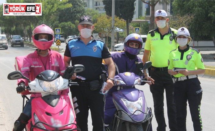 İnternet üzerinden alışverişlerde pandemi süreci ile birlikte market alışverişi ve yemek siparişlerinin de artarak eklenmesiyle, motosiklet kullanımı da arttı. Bununla orantılı olarak kazalar, yaralanmalar ve can kayıplarında da artış yaşanmaya başladı. Bu kapsamda harekete geçen Aydın İl Emniyet Müdürlüğü Bölge Trafik Denetleme ekipleri Toplum Destek Polisleri işbirliğiyle Efeler genelinde denetimler gerçekleştirdi. Adnan Menderes Bulvarı ve İzmir Bulvarı üzerinde gerçekleştirilen denetimlerde, paket servislerde taşımacılık yapan kuryelerin ekipmanları ve uygunluk belgeleri kontrol edildi. Pandemi sürecinde artan motor kullanımı ile birlikte motosiklet kazalarının artması sebebiyle de motosiklet sürücülerine ve kuryelere bilgilendirme broşürleri dağıtıldı. Gerekli bilgilendirmelerin yapıldığı denetimlerde, kask ve ekipmanın önemine de dikkat çekildi. Ayrıca otomobil sürücülerine de motosikletli sürücülere karşı bilinçli ve duyarlı olmaları yönünde bilgilendirmeler yapıldı.