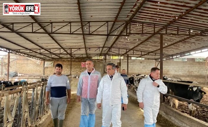 Aydın genelinde sürdürülen yoğun aşılama çalışmalarıyla şap hastalığının yayılımının önüne geçilmesi ve hayvancılıkta verim kayıplarının önlenmesi hedefleniyor. Şap hastalığına karşı yürütülen çalışmalar kapsamında Aydın İl Tarım ve Orman İl Müdürü Ayhan Temiz, Efeler İlçe Müdürlüğü Hayvan Sağlığı personeliyle birlikte sahada incelemelerde bulunarak işletme ziyareti gerçekleştirdi. Ziyarette İl Müdür Yardımcısı Dr. Hamit Eray Yeşilçayır ve Efeler İlçe Müdürü Mehmet Esen de hazır bulunarak işletme sahibine; hayvan hastalıklarından korunmada en önemli unsur olan aşılama faaliyetleri ile biyogüvenlik tedbirlerinin önemi hakkında bilgilendirmelerde bulundu. Yetkililer, hastalık riskine karşı hazırlanan planlama doğrultusunda ikinci doz aşılama çalışmalarının da hız kesmeden devam ettiğini belirtirken, yetiştiricilere aşılama programlarına eksiksiz uyulması ve işletmelerde hijyen şartlarının titizlikle uygulanması çağrısında bulundu.