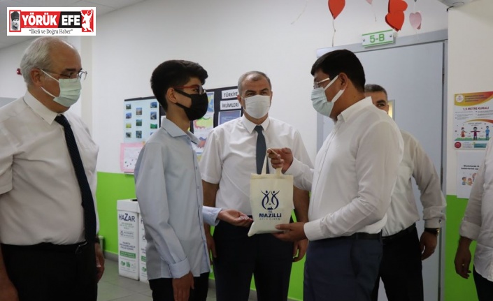 Nazilli Belediye Başkanı Kürşat Engin Özcan, Liselere Geçiş Sistemi’nde 500 tam puan alarak Türkiye 1’incisi olan Emre Berat Keser ve ailesini ziyaret ederek hediye takdim etti.