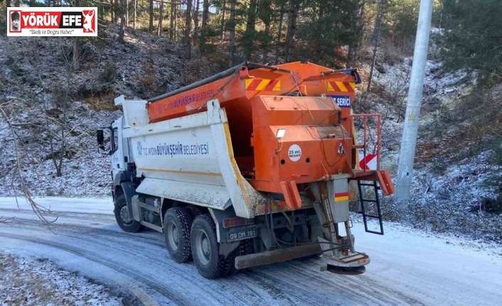 Aydın’ın yüksek kesimlerinde kar yağışı yaşanmasının ardından çalışmalarına başlayan Büyükşehir Belediyesi ekipleri, buzlanmayı önlemek amacıyla yollarda tuz serimi gerçekleştirdi.