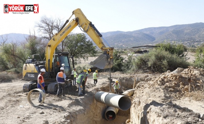 Aydın’ın Çine ilçesinde 2021 yılından bu yana yapımı devam eden Çine Sulaması 2. Kısım İkmali projesinde çalışmalar aralıksız devam ederken, yer altına indirilen sulama boruların montajı yapılıyor.