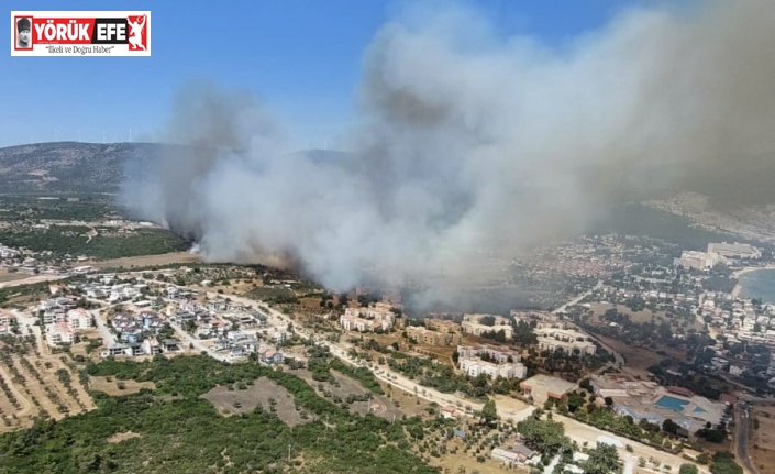 Aydın’ın Didim ilçesinde makilik alanda çıkan yangını söndürme çalışmaları devam ediyor.