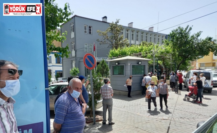 Aydın’ın Efeler ilçesinde hafta sonu kısıtlama kapsamına girmemek için izin belgesi almak isteyen vatandaşlar, polis merkezi önünde uzun kuyruk oluşturdu.
