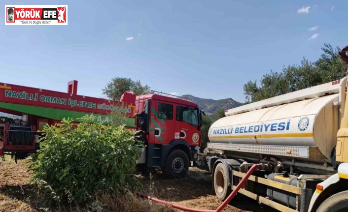 Nazilli Belediyesi ekipleri, İsabeyli Mahallesi’nde çıkan yangının söndürme çalışmalarına destek verdi.
