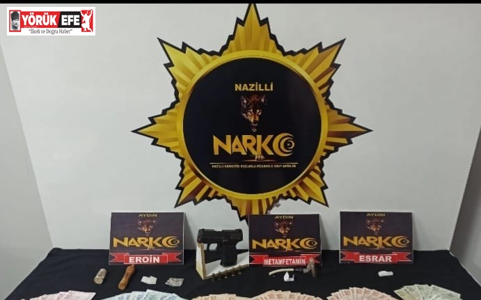 Aydın’ın Nazilli ilçesinde bir eve düzenlenen operasyonda uyuşturucu madde ve silah ele geçirildi.