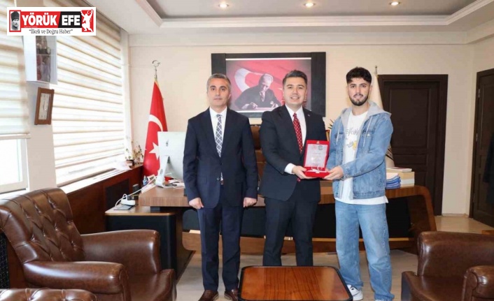 Sanatıyla Karacasu’ya değer katan öğrenci plaketle onurlandırıldı