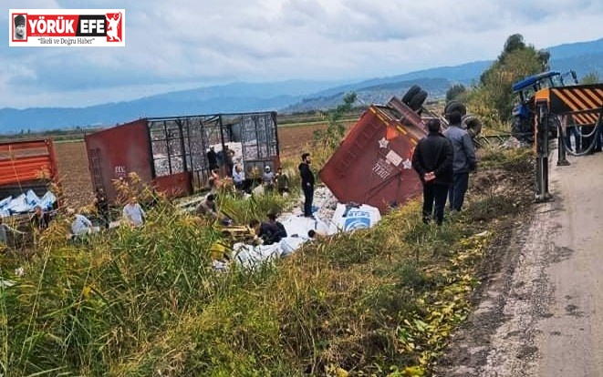 Aydın’ın Söke ilçesi Bağarası karayolunda sabah saatlerinde bir kamyonun devrilmesinin ardından aynı yerde bu kez de bir traktöre bağlı römork devrildi.