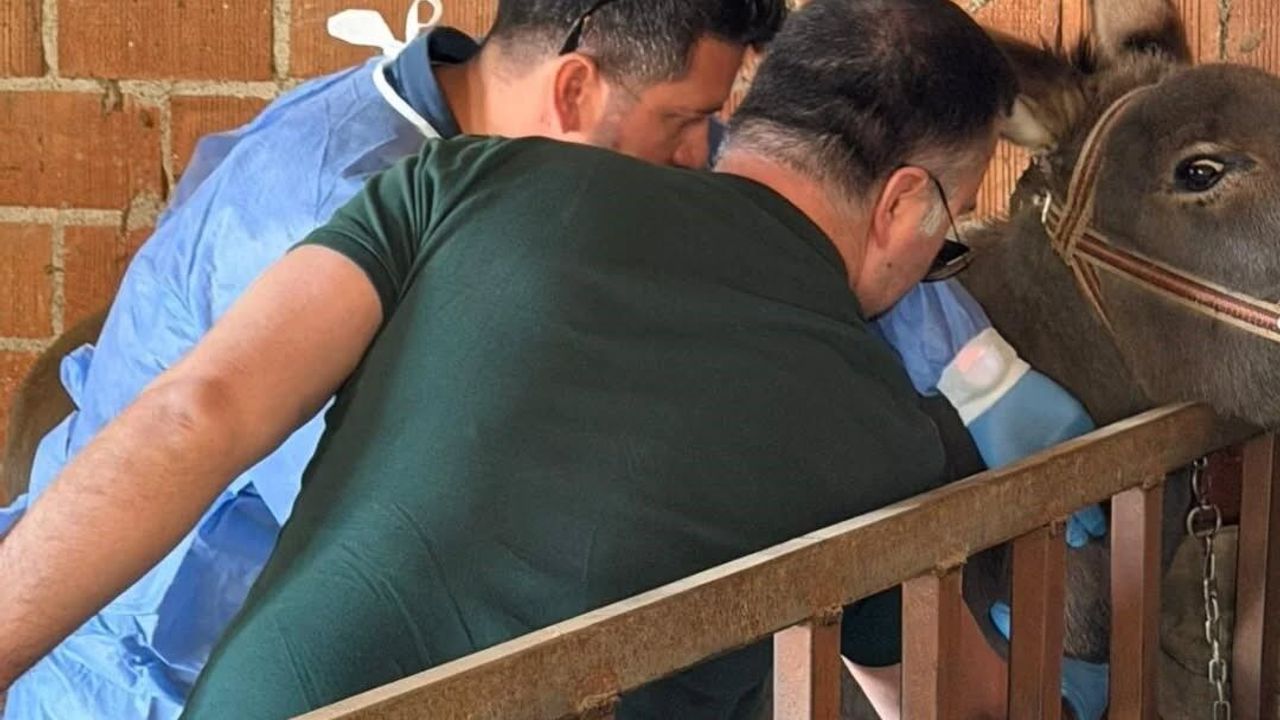 Afrika At Vebası (AHS) hastalığında farkındalığın artırılması çalışmalarına yönelik Aydın'daki at ve eşeklerden numune alınıyor.