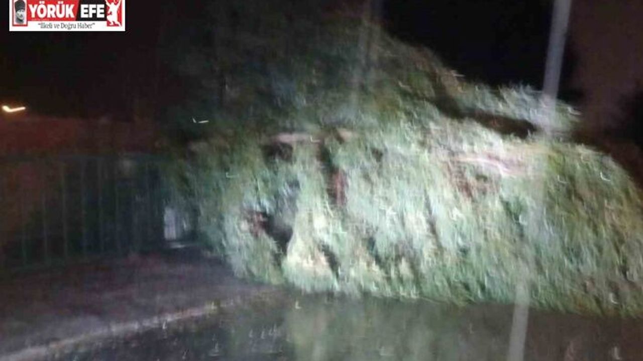 Aydın’da gece saatlerinde etkili olan kuvvetli rüzgar ve fırtına nedeniyle bazı ağaçlar devrildi, trafikte aksamalar yaşandı.