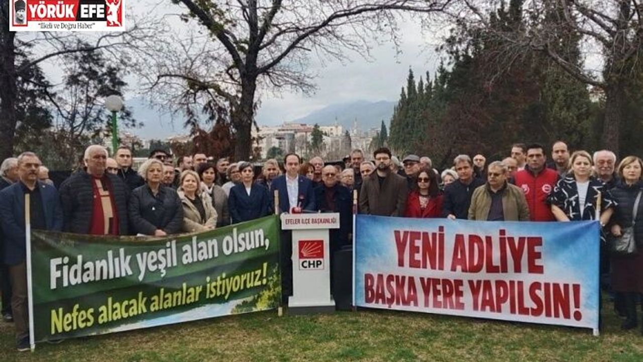 CHP Efeler İlçe Başkanlığı Aydın Adliye binasının orman fidanlığına yapılmasına itiraz ederek, fidanlığının önünde basın açıklaması düzenledi. CHP Efeler İlçe Başkanı Kaan Erçetin yatığı açıklamada şunları kaydetti;