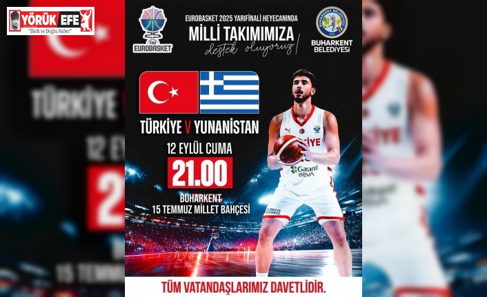 Avrupa Basketbol Şampiyonası’nda yarı finale yükselen A Milli Takım, Yunanistan ile karşı karşıya gelecek. 12 Dev Adam’ın tarihi maçı için geri sayım sürerken, Türkiye-Yunanistan yarı final karşılaşması için Buharkent Belediyesi tarafından dev ekran kurulacak. 12 Eylül Cuma (bu akşam) günü saat 21.00’de başlayacak mücadele için dev ekran Buharkent 15 Temmuz Millet Bahçesi’nde kurulacak.