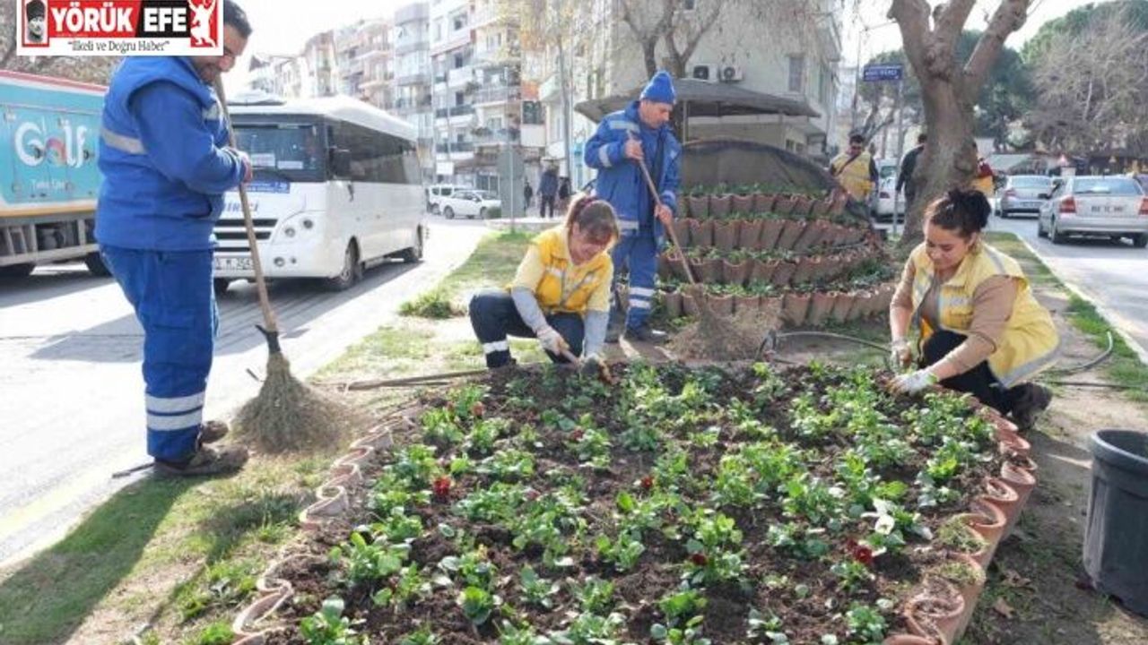 Aydın Büyükşehir Belediyesi, Söke’de kapsamalı temizlik çalışması gerçekleştirirken, Büyükşehir’in yetiştirdiği mevsimlik çiçekler de sokakları renklendirdi.