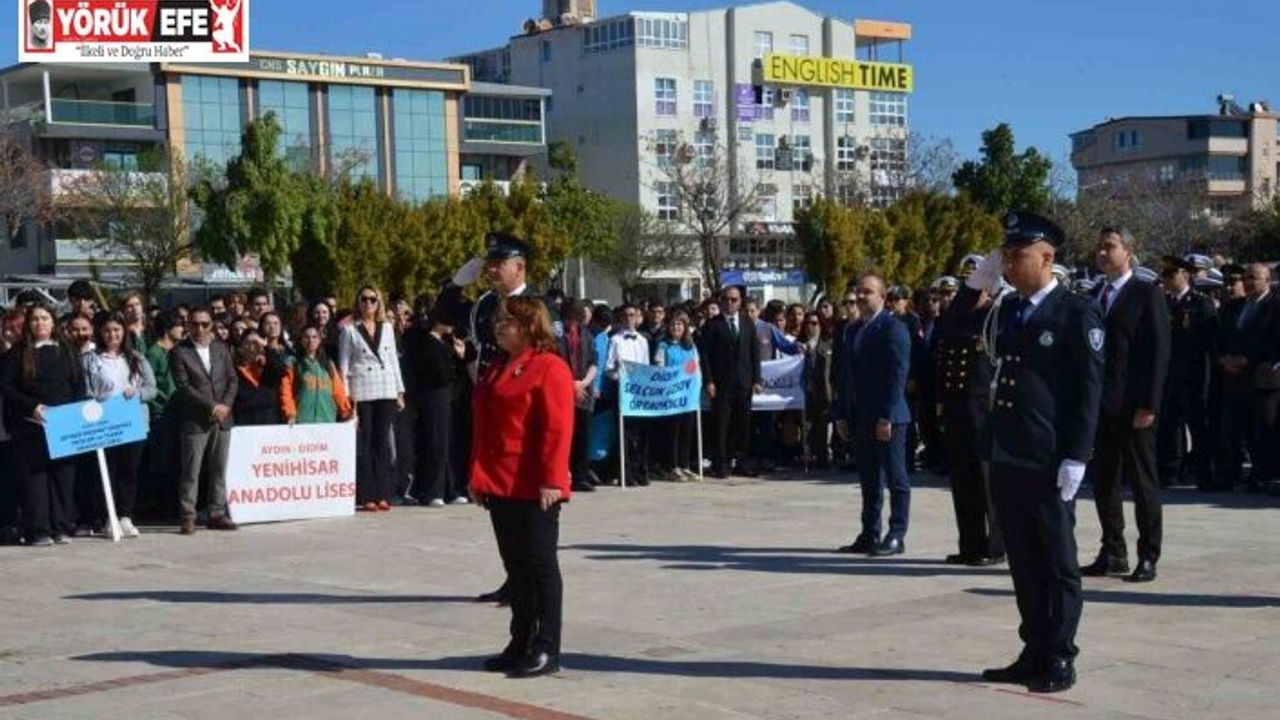 Didim Kent Meydanı’nda gerçekleştirilen çelenk koyma törenine Didim Kaymakamı Can Kazım Kuruca, Didim Garnizon Komutanı Erkut Arslan, Didim Belediye Başkanı Hatice Gençay, Didim Cumhuriyet Başsavcısı Anıl Altay, Muharip Gaziler Derneği Didim temsilcisi Aydın Öztürk, kurum müdürleri, siyasi parti temsilcileri, askeri erkan ve öğrenciler katıldı. İlçe protokolünün çelenk sunumunun ardından, bir dakikalık saygı duruşunda bulunuldu, akabinde İstiklal Marşı okundu. Çelenk sunma töreninin ardından gerçekleştirilen kutlamalar, kültür merkezinde devam etti. Selçuk Özsoy Ortaokulu tarafından gerçekleştirilen kutlamalar kapsamında saygı duruşunda bulunuldu, ardından İstiklal Marşı okundu.