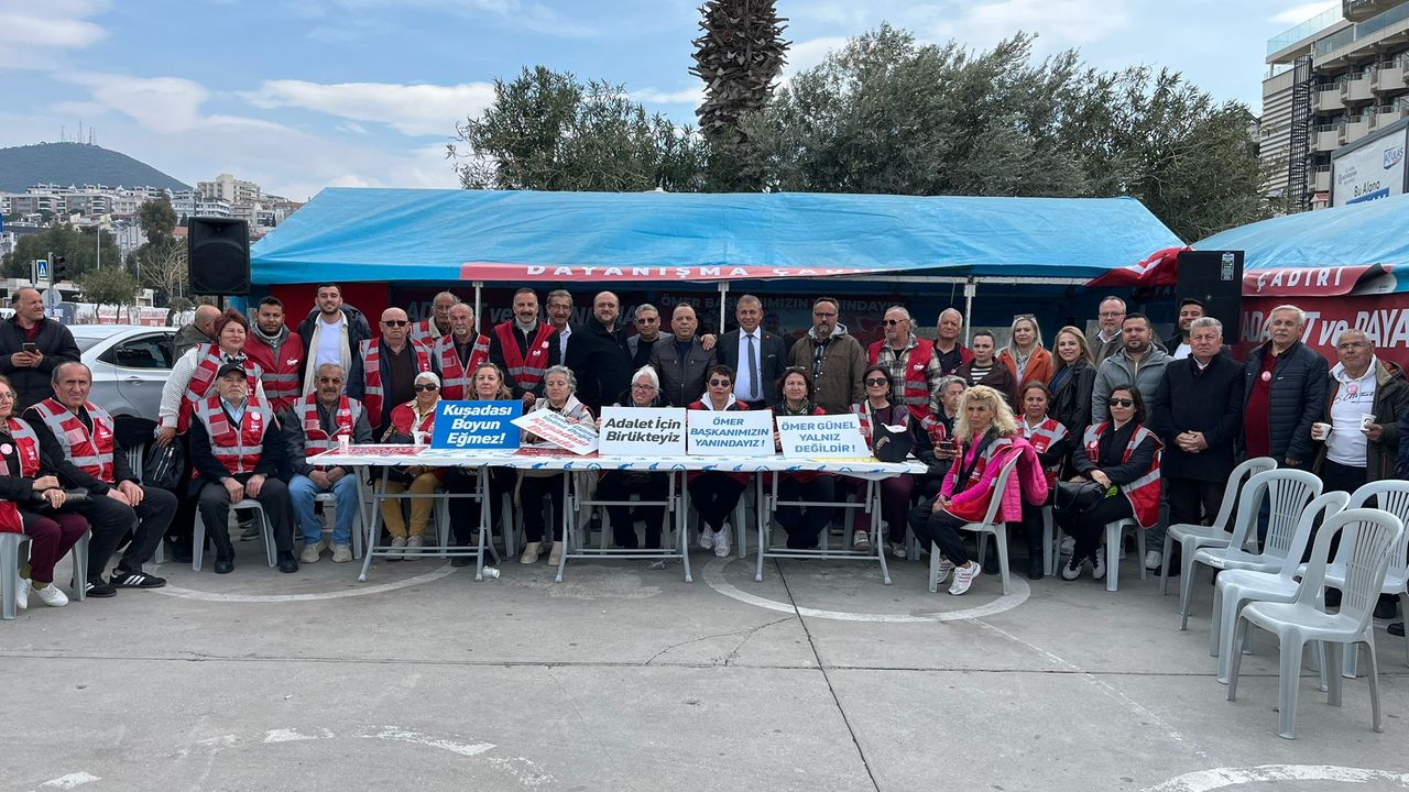 Bozdoğan Belediye Başkanı Mustafa Galip Özel ise, ilçe örgütüyle birlikte dayanışma çadırında bir araya geldiklerini belirterek, “Ömer Günel’in bir an önce görevine dönmesi için buradayız. Yanında olduğumuzu bir kez daha güçlü şekilde ifade ettik” dedi.