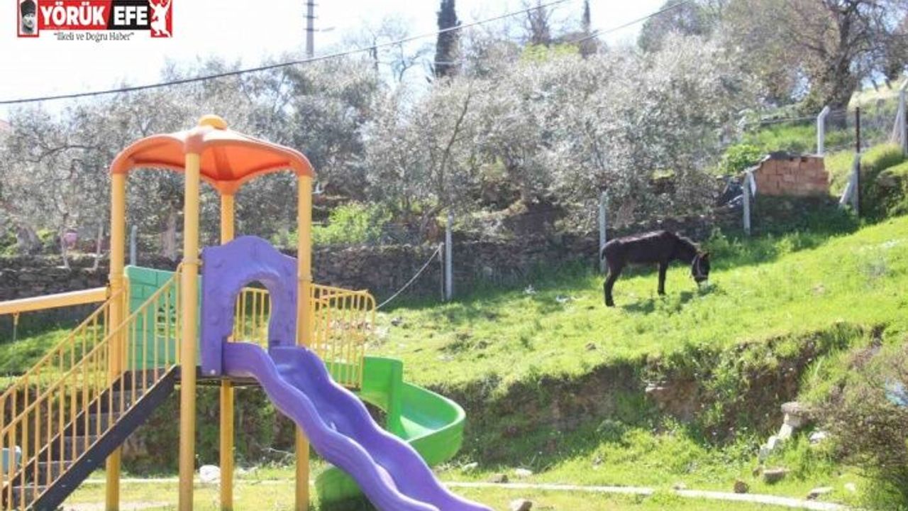 Aydın’da boş bir oyun parkında görülen eşek, yüzleri gülümsetti.