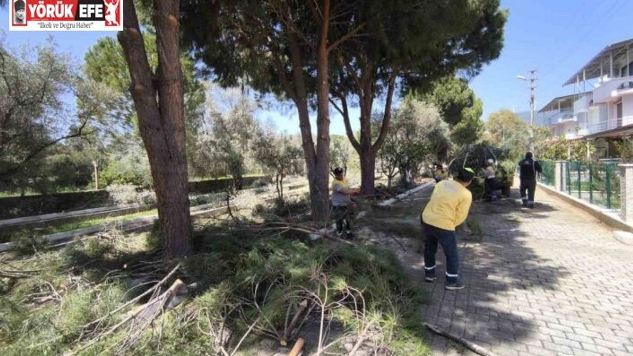 Aydın’ın Didim ilçesinde çalışmalarına devam eden belediye ekipleri, Fevzipaşa Mahallesi’ndeki çam ağaçlarını budadı.