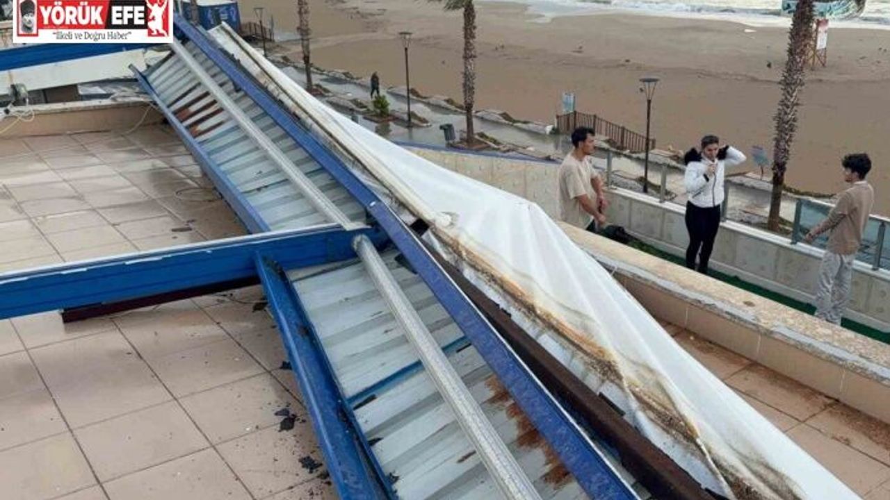 Aydın’ın Didim ilçesinde etkili olan fırtına hayatı olumsuz etkilerken, bazı iş yerlerinin çatıları zarar gördü.