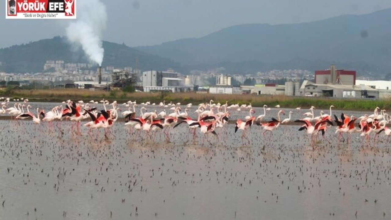 Her yıl olduğu gibi bu yıl da allı turna olarak bilinen flamingolar, Aydın’ın önemli tarım bölgelerinden Söke Ovası’na gelmeye başladı. Son günlerde etkili olan yağışların ardından su ile dolan tarlalara inen flamingolar eşsiz manzara oluştururken, Söke Ovası’nı şenlendirdi. İnce bacakları ve uzun boyunları ile tarlalarda balerin gibi süzülen flamingoların Söke Ovası’nda doğanın tüm güzelliğini ortaya çıkardığını ifade eden Ekosistemi Koruma ve Doğa Sevenler Derneği (EKODOSD) Başkanı Bahattin Sürücü, endüstriyel atıkların ve çevre sorunlarının habitat kaybına yol açtığına dikkat çekti.
