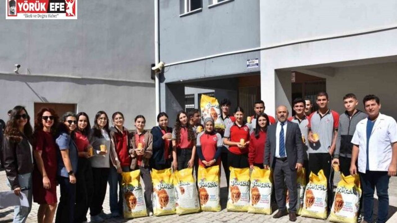 Aydın’ın Germencik ilçesinde lise öğrencileri, belediyenin Sokak Hayvanları Merkezi’ne mama bağışında bulundu.