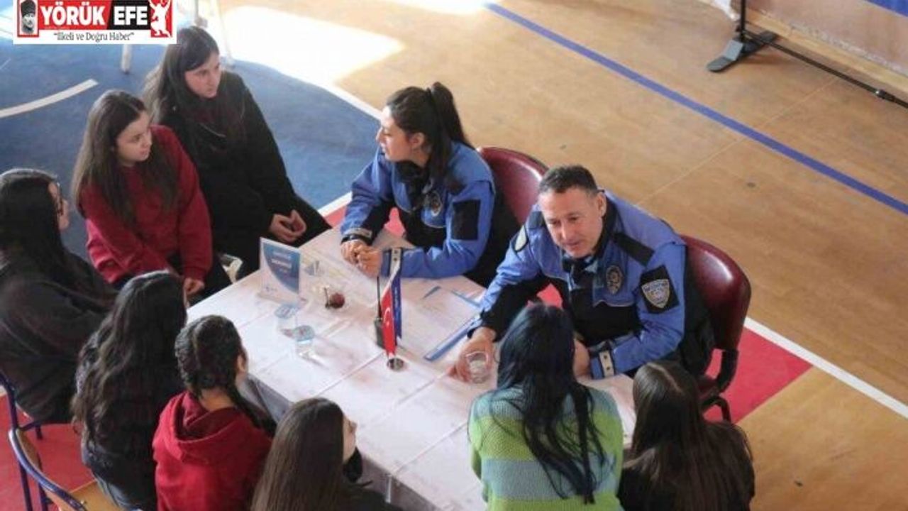 Aydın’ın Germencik ilçesinde lise öğrencileriyle buluşarak Aydın İl Emniyet Müdürlüğü ekipleri, polis olma şartları ve meslek tanıtımı hakkında bilgilendirme yaptı.