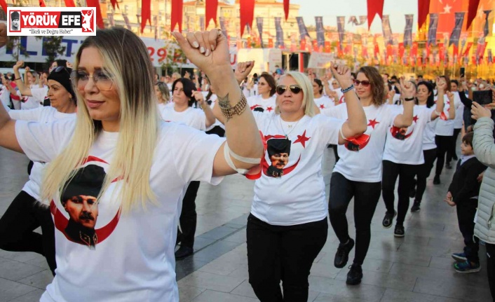 29 Ekim Cumhuriyet Bayramı kapsamında Aydın’da, çeşitli sivil toplum örgütlerinin öncülüğünde bir araya gelen 98 kadın, Cumhuriyet’in 98. yılını zeybek oynayarak kutladı. Cumhuriyet’in kadınlara verdiği haklara dikkat çekerek farkındalık oluşturmak amacıyla hazırlanan etkinlikte bir araya gelen kadınlar, ‘Cumhuriyet fazilettir’ sloganları ile Cumhuriyet’in önemine dikkat çektiler.