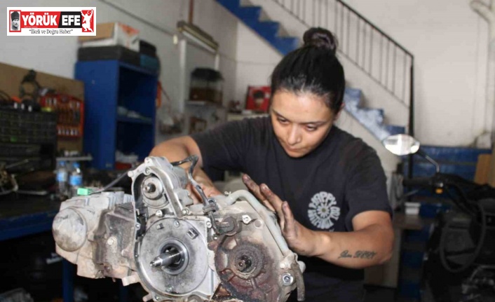 Aydın’da çırak sıkıntısı yaşayan eşine destek olmak için sanayiye adım atan 33 yaşındaki Hayriye Gedik, kısa sürede motor tamirini öğrenerek hem dükkanın hem de ailesinin yükünü omuzladı.