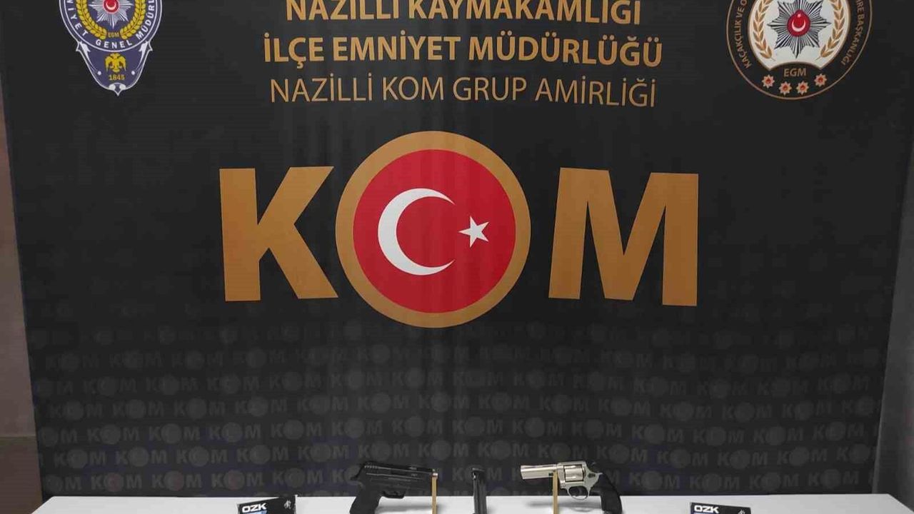 Nazilli İlçe Emniyet Müdürlüğü Kaçakçılık ve Organize Suçlarla Mücadele Büro Amirliği ekiplerince ortak bir çalışma gerçekleştirildi. Edinilen bilgiye göre ekipler, C.D. isimli şahsın iş yerine baskın düzenledi. Yapılan aramalarda 2 adet ruhsatsız tabanca, 70 adet tabanca fişeği ele geçirildi. Gözaltına alınan C.D. hakkında adli işlem başlatıldı.