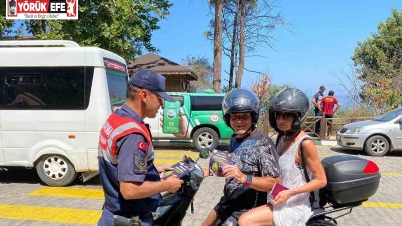 Aydın Kuşadası Dilek Yarımadası Milli Parkı’nda yerli ve yabancı turistlere orman yangınları konusunda bilgilendirmede bulunularak broşürler dağıtıldı.