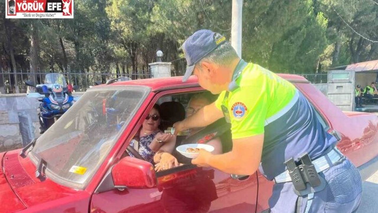 Bayram tedbirleri kapsamında gerçekleştirilen trafik denetiminde jandarma ekipleri, sürücülerin bayramlarını kutlayarak şeker ikram etti.