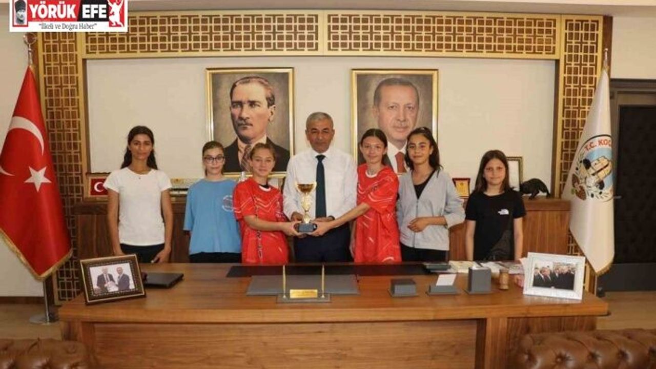 Ziyaretin sonunda kazandıkları kupayı Başkan Kaplan’a hediye eden sporcular, kendilerine yaptığı desteklerden dolayı teşekkür ettiler.