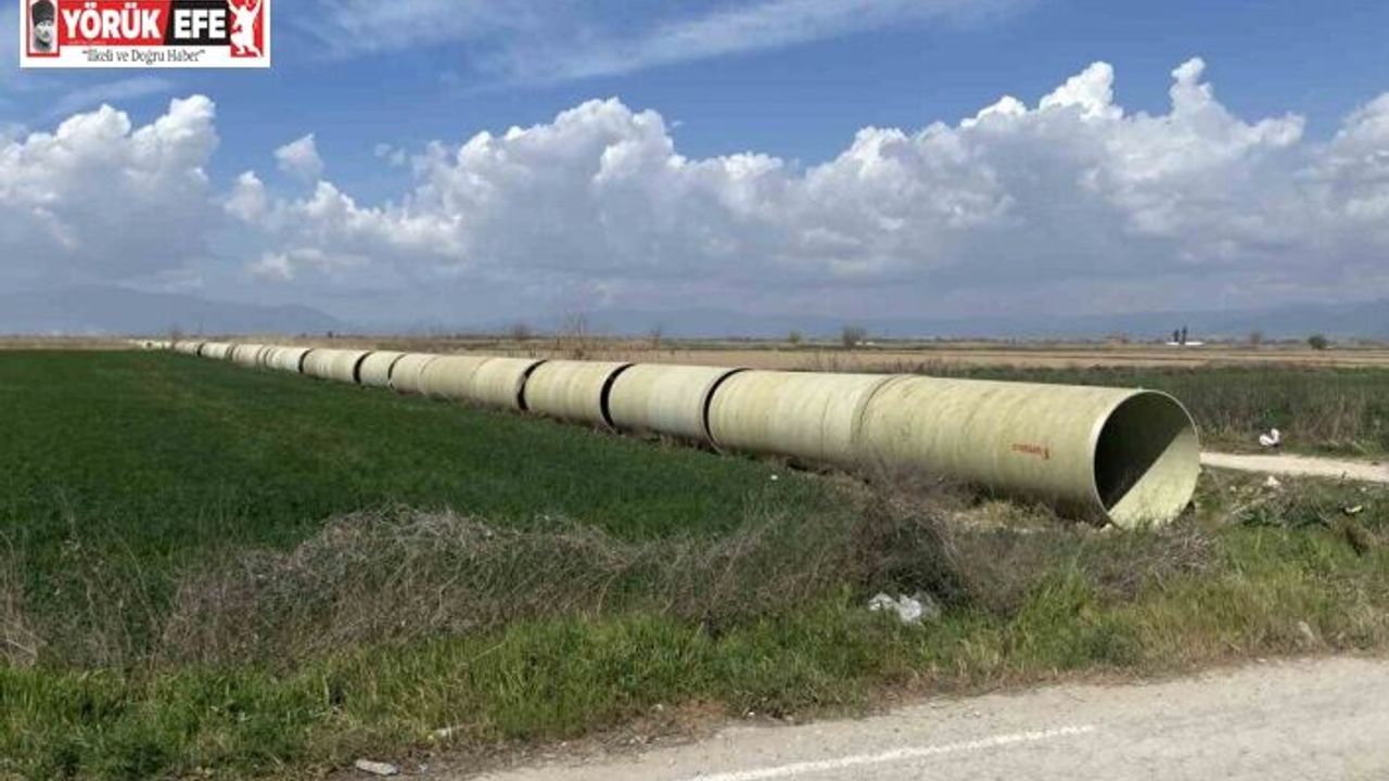 Aydın’ın Koçarlı ilçesinde tarım arazilerinin sulanmasında hizmet verecek olan çalışmalarda bölgeye getirilen devasa boruların montajı aralıksız devam ediyor.