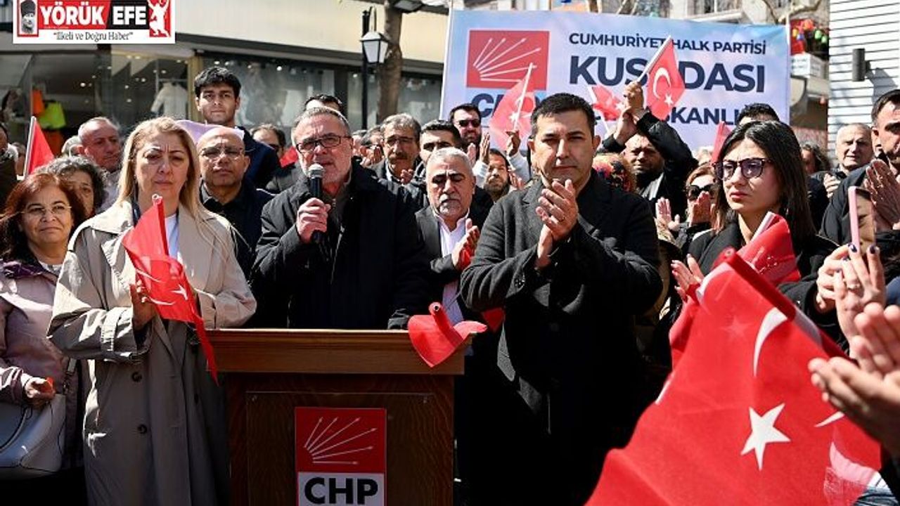 Cumhuriyet Halk Partisi (CHP) Kuşadası İlçe Örgütü, İstanbul Büyükşehir Belediye Başkanı ve CHP'nin cumhurbaşkanı aday adayı Ekrem İmamoğlu'nun gözaltına alınmasına, yaptıkları basın açıklaması ile sert tepki gösterdi. Türkiye’nin 81 il ve 922 ilçesinde eş zamanlı olarak gerçekleştirilen basın açıklaması için CHP Kuşadası İlçe Örgütü’nün önünde toplanan partililer, ellerinde taşıdıkları Türk bayrakları ile Kaya Şavkay Meydanı’na kadar yürüdüler.