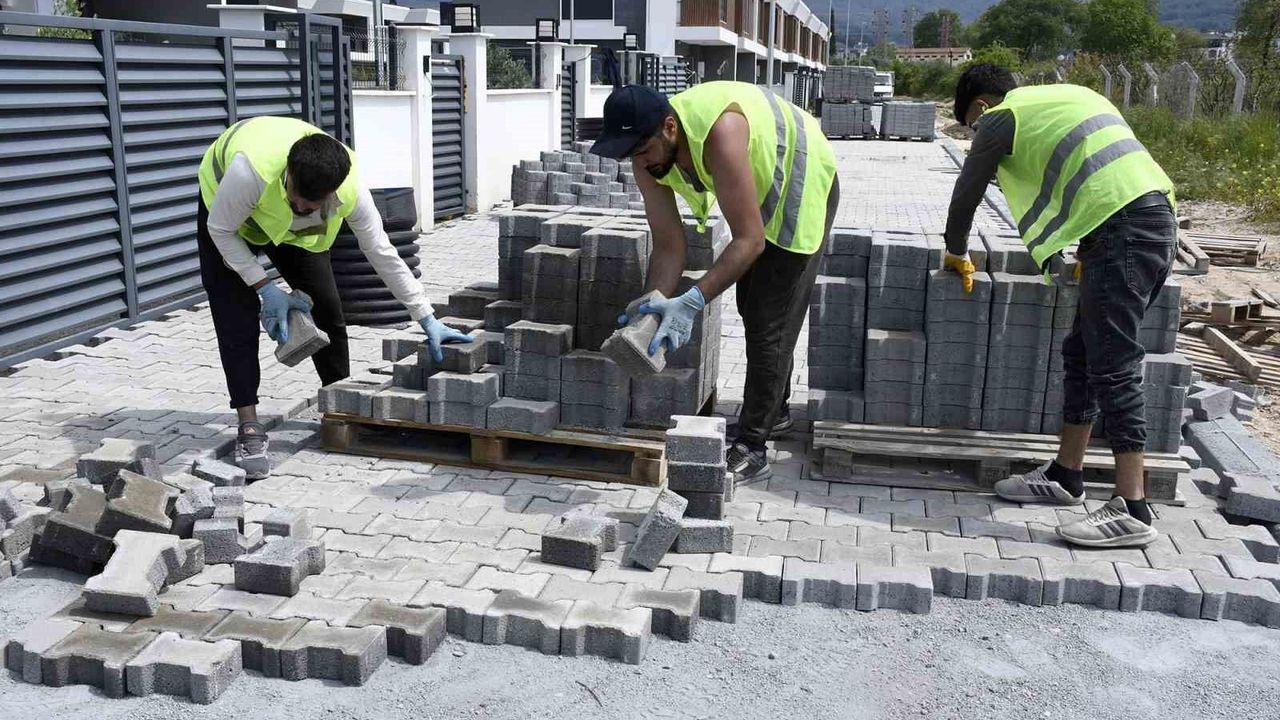 Kuşadası Belediyesi tarafından Davutlar Mahallesi'ne yapılan üstyapı yatırımları kapsamında yaklaşık 2 bin metrekare daha yeni yol kazandırmak için çalışmalar sürüyor.