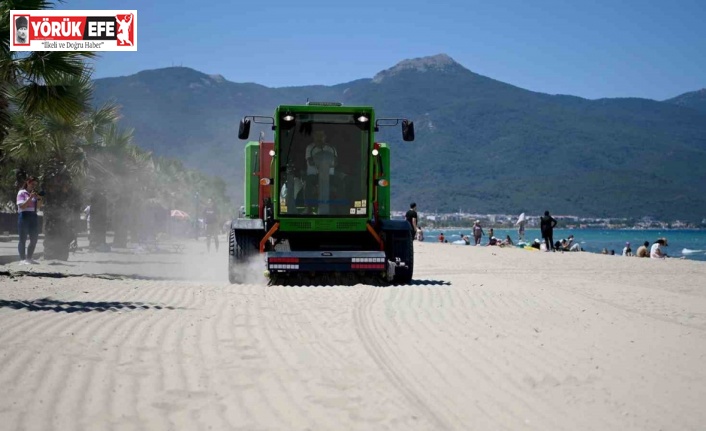 Kuşadası Belediyesi, kent genelindeki plajlarda tatilcilerin daha hijyenik bir ortamda keyifle vakit geçirmesi için filosundaki kum temizleme araçlarına bir yenisini daha ekledi. Plaj yüzeyinin 30 santimetre altına kadar girip, yabancı cisimleri toplayan araç ayrıca kumu tırmıklayarak havalanmasını da sağlıyor.