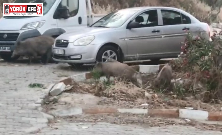 Aydın’ın Kuşadası ilçesinde aç kalan yaban domuzları şehir merkezine indi. Yaban domuzları şehir merkezine gelip sitelerin ara sokaklarında dolaştı. Çöp konteynerlerini karıştıran yaban domuzlarının yiyecek aradığı görüldü. Yavrularıyla birlikte sürü halinde sokaklarda dolaşan yaban domuzları otomobillerin arasında rahatça kimseye aldırış etmeden gezindi. O anlar ise çevre sakinlerinin cep telefonu kamerasına yansıdı. Görüntüde domuzların sokak aralarında yiyecek araması yer aldı.
