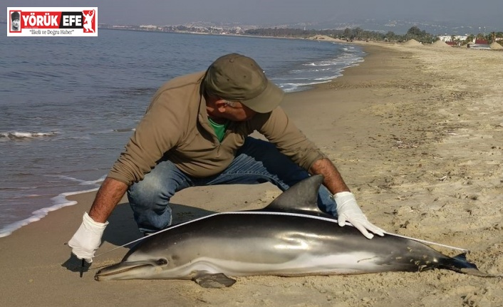 Aydın’ın Kuşadası ilçesinde sahile telef olmuş Tırtak türü Yunus balığı vurdu.