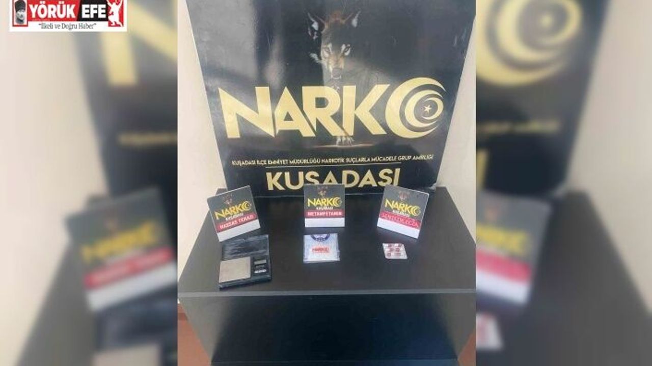 Edinilen bilgiye göre, Kuşadası Narkotik Suçlarla Mücadele Büro Amirliği ekiplerince bir ikamette yapılan aramalarda; 15.97 gram metamfetamin, 6 adet sentetik hap, 1 hassas terazi ele geçirildi. Operasyonda A.P. (35) yakalanarak gözaltına alındı. Zanlı, emniyetteki işlemlerinin ardından sevk edildiği adli makamlarca tutuklanarak cezaevine gönderildi.