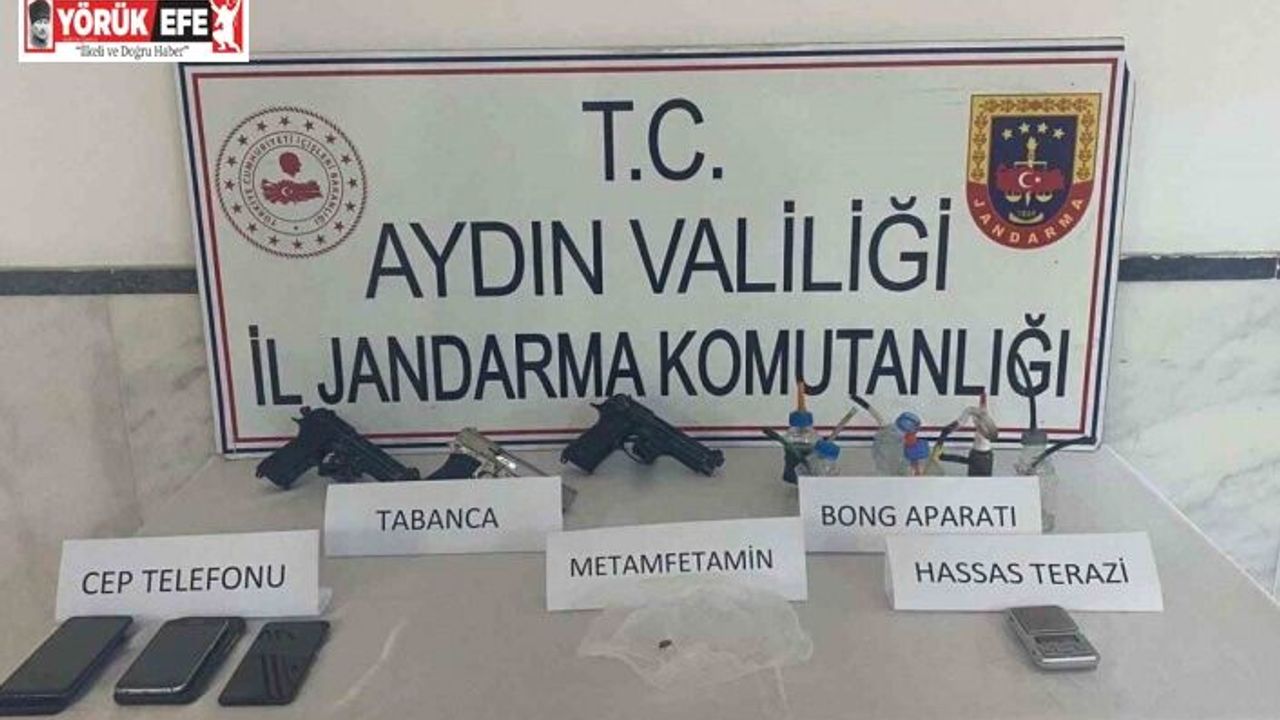 Kuyucak İlçe Jandarma Komutanlığı tarafından uyuşturucu madde imal ve ticaretine yönelik çalışma gerçekleştirildi. Başaran Mahallesi’nde "Dolandırıcılık" suçundan hakkında infaza yönelik yakalama kararı bulunan B.D. (33) isimli şahsın, S.Ö ve N.Ö. isimli şahısların evinde saklandığı ve bu evde birlikte uyuşturucu madde ticareti yaptıklarının tespit edilmesi üzerine uyuşturucu madde arama köpeği ile birlikte ikamette arama yapıldı. Yapılan aramada, 13 gram metamfetamin, 1 adet hassas terazi, 3 adet tabanca, 6 adet uyuşturucu kullanma aparatı, 5 adet cep telefonu ele geçirildi. Adli makamlara sevk edilen şahıslardan B.D. tutuklanırken, S.Ö. ve N.Ö. isimli şahıslar ise adli kontrol şartıyla serbest bırakıldı.