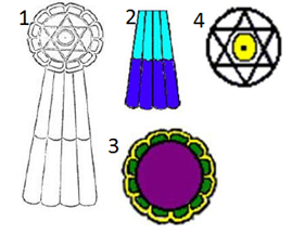 Altı köşeli yıldızın çevresindeki çember, dünyadan başka alemlerin de bulunduğunu, bunun dışındaki 12 fisto ise,(3) insanın uzak durması gereken 12 kötü eğilimi simgeler. İnsan ruhu, diğer alemlere geçmeden önce, bu dünyasal 12 kötü eğilimden kurtulmak zorundadır. Bu 12 kötü eğilim simgeleştirilmiş halidir.