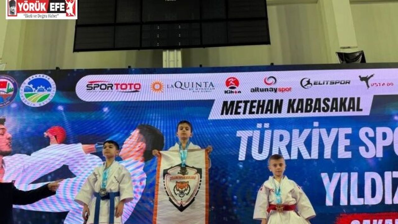 Nazilli Zafer İlkokulu 3. sınıf öğrencisi Eralp Umut Çuval Sakarya’da düzenlenen Türkiye Karate Yıldızlar Ligi müsabakalarında kendi kategorisinde gösterdiği üstün performansla Türkiye birincisi oldu. Rakiplerini geride bırakarak altın madalyaya uzanan minik sporcu, büyük bir başarıya imza attı. Aydın İl Milli Eğitim Müdürlüğü tarafından yapılan paylaşımda, Türkiye şampiyonu olarak Aydın’ın gururu olan Eralp Umut Çuval, ailesi ve emeği geçen öğretmenler tebrik edilirken öğrencinin başarılarının artarak devam etmesi temenni edildi.