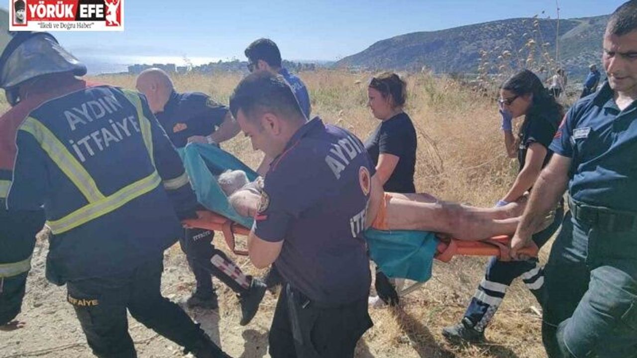 Aydın’ın Kuşadası ilçesinde emekli bir öğretmen, pazardan aldığı patlıcanları arazide közlemek isterken çıkan yangına panikle tepki verince, 25 metrelik uçurumdan yuvarlandı. Emekli öğretmeni itfaiye ekipleri kurtardı.