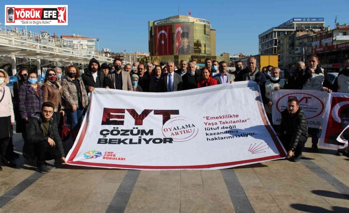 Cumhuriyet Halk Partisi (CHP) Aydın İl Başkanı Ali Çankır, Emeklilikte Yaşa Takılanlar (EYT) ile bir araya gelerek basın açıklaması düzenledi. EYT sorunun toplumsal bir sorun haline dönüştüğüne dikkat çeken Çankır, EYT’lilerin taleplerini hatırlattı. Atatürk Kent Meydanı’nda gerçekleştirilen basın açıklamasında konuşan CHP’li Çankır, iktidara geldiklerinde emekliler ve emeklilikte yaşa takılan vatandaşlar ile ilgili yapacakları düzenlemeleri açıkladı.