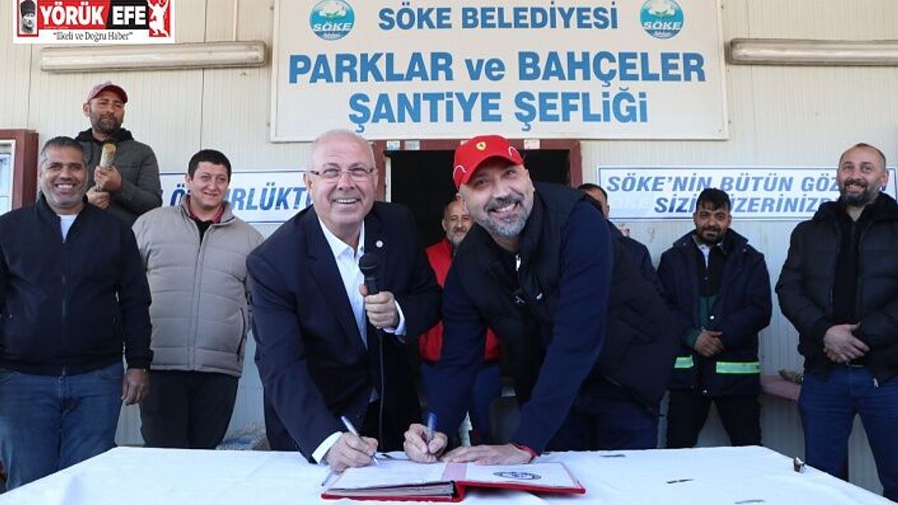 Toplu iş sözleşmesi, Söke Belediyesi şantiye alanında düzenlenen törenle imzalandı. İmza töreninde Söke Belediye Başkanı Dr. Mustafa İberya Arıkan, belediye bürokratları, LİMA A.Ş. yöneticileri, Belediye-İş Sendikası temsilcileri ve çok sayıda işçi hazır bulundu. Başkan Arıkan, işçiler tarafından davul-zurna ve meşaleler eşliğinde karşılandı. Törene ayrıca AK Parti Söke İlçe Başkanı M. Saki Oğuz da katılarak, imzalanan sözleşmenin tüm çalışanlara hayırlı olmasını diledi.
