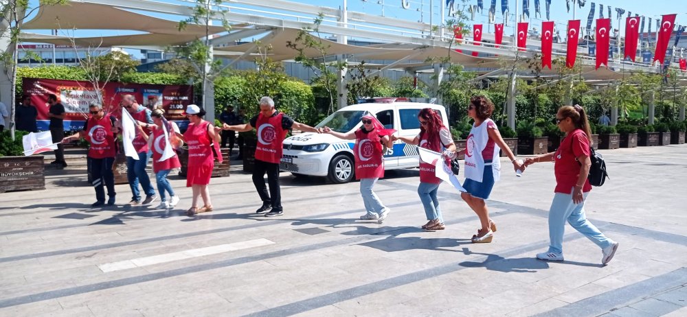 Genel Sağlık İş Sendikası Aydın Şubesi adına Atatürk Kent Meydanı'nda sendika üyelerinin de katılımıyla açıklama yapan Şube Başkanı Mehtap Borucu, açıklamasında şu ifadelere yer verdi;